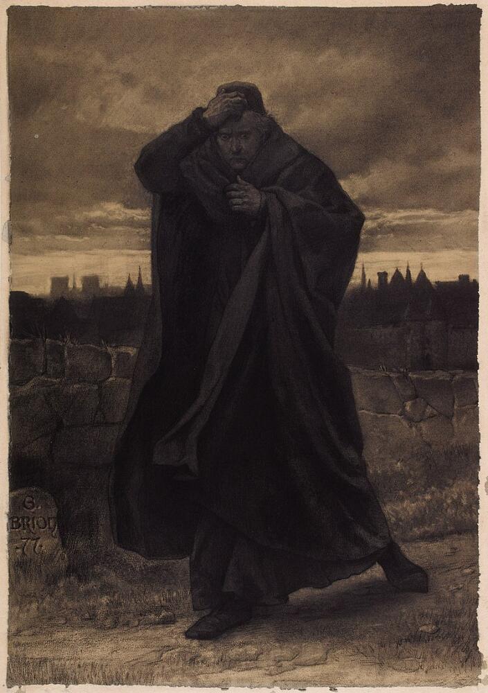 Друзья шутят: если смерть придёт, то что? «Мы и ей нальём», — с легкомысленным смехом отвечает Феб. Но тут его настигает незнакомец в монашеском одеянии. Он пытается предотвратить встречу Феба и Эсмеральды. Нетрудно догадаться, что это Клод Фролло. Что ж — если свидание неизбежно, пусть его прервёт кинжал!