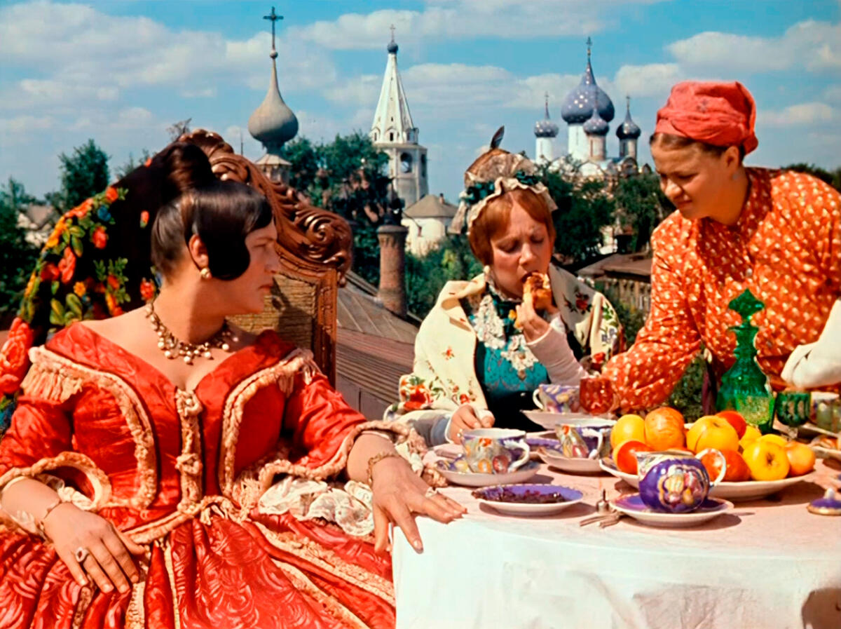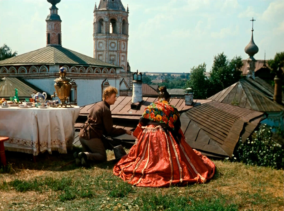 Не остался без внимания создателей фильма главный храм Суздаля — Собор Рождества Пресвятой Богородицы, уже мельком показанный в сцене чаепития: