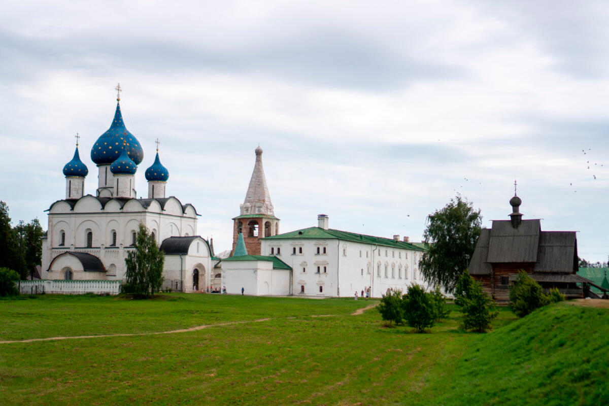 Справа на фото — Никольская церковь, перевезённая в Суздаль из села Глотово, памятник деревянной архитектуры середины XVIII века. Характерно, что в Суздале три одноименные Никольские церкви.