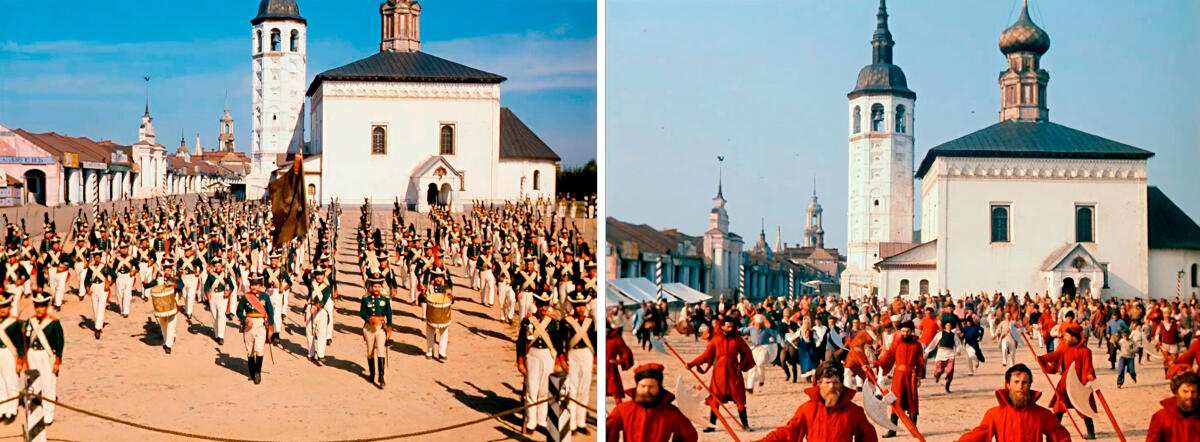 На ближнем плане следующего кадра из фильма как раз и видна одна из этих Никольских церквей, построенная в 1720−1739 годах: