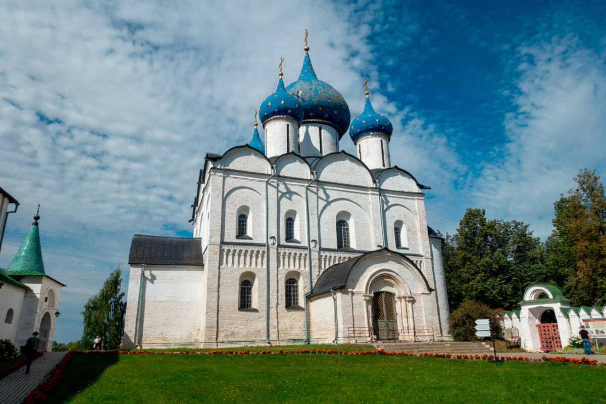Главный храм Суздаля — Собор Рождества Пресвятой Богородицы, расположенный на территории Суздальского Кремля в центре кольца земляных валов, был построен из белого камня в начале XIII века, а верхняя часть перестроена из кирпича в 1528−30 годах. В соборе похоронены сыновья князя Юрия Долгорукого, князья из рода Шуйских и другие.