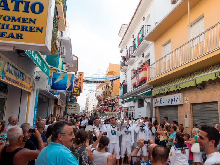 Вот так проходит ежегодный фестиваль в честь Святой Девы Кармен в андалузском городе Торремолиносе.