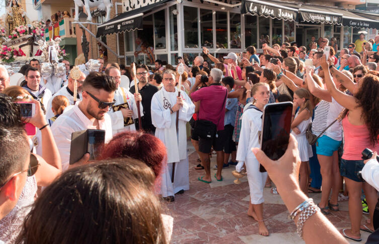 Вечером наступает самая эффектная часть фестиваля — Procession «Virgen Del Carmen», крестный ход с выносом на руках из прихода статуи Святой Девы Кармен.
