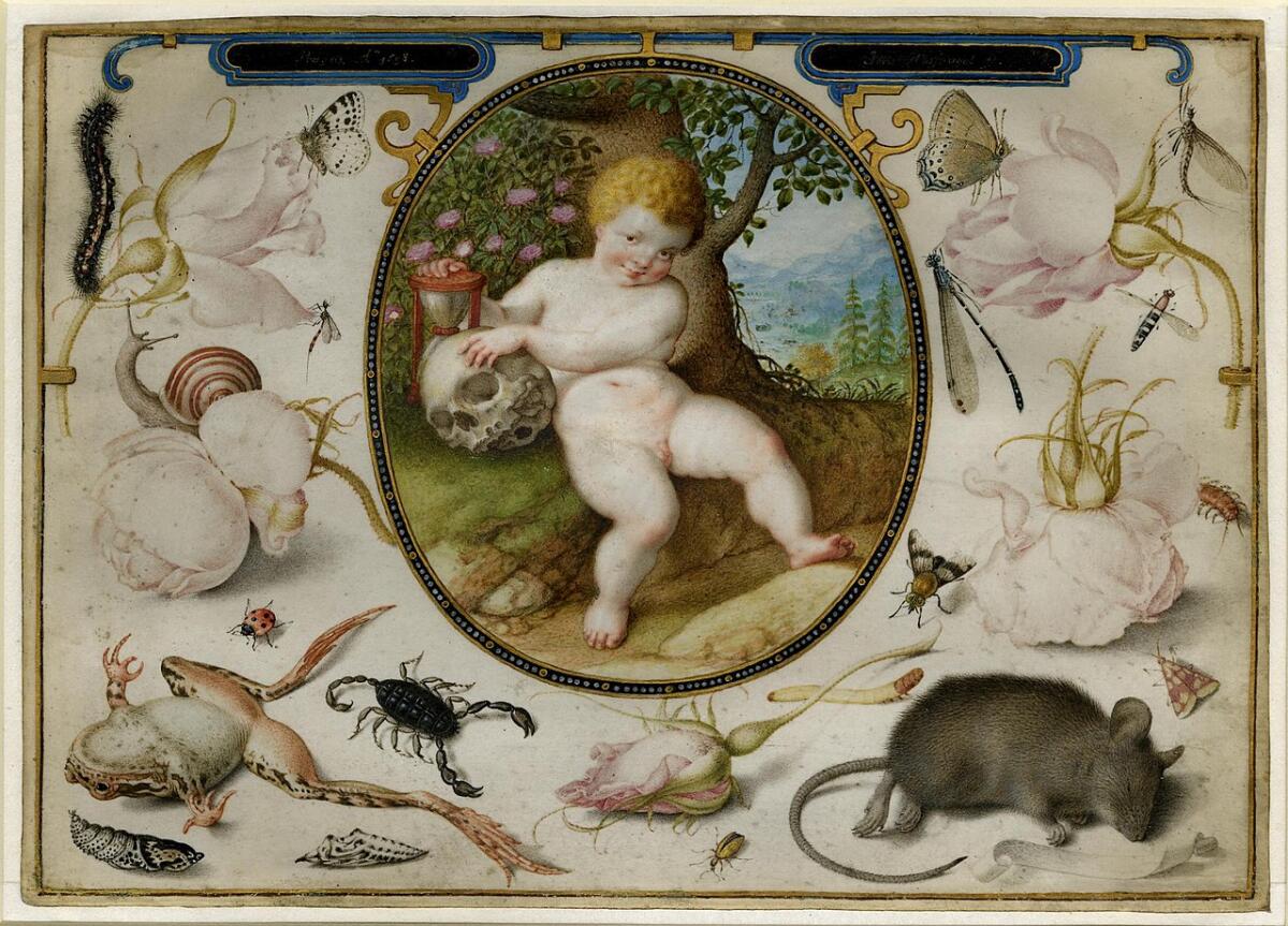 Мышей в голландских натюрмортах можно было видеть неоднократно — в картинах Флегеля, Яна Брейгеля Старшего, Саверея, Фосмаера. И был еще один предшественник этой картины — иллюстрированная рукопись знаменитого антверпенского художника Йориса Хёфнагеля, превосходного рисовальщика, рукой которого были зарисованы множество цветов, трав, насекомых и мелких животных. Эти рисунки сопровождались латинскими девизами и афоризмами. А девизы и афоризмы художник черпал из «Пословиц» Эразма Роттердамского с кружевами древней мудрости, которые многократно переиздавались (в начальном издании было 818 пословиц, в последнем прижизненном издании — 4151 пословица).
