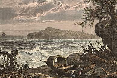 Остров в ту эпоху (да и, наверное, сейчас) считался опасным для кораблей. То же самое можно сказать об острове из романа Дефо, у берегов которого разбился корабль Робинзона. Определенное сходство наблюдается и в социальной обстановке на острове: напомню, что в конце романа Дефо остров перестал быть необитаемым, там появились испанцы с затонувшего судна, индейцы и проштрафившиеся матросы с британской шхуны. На Тринидаде, как и в романе, индейцы враждовали между собой (как мы помним, там обитали араваки и карибы) и с испанцами; испанцы воевали с индейцами, а в случае, если прибывали английские каперы, то и с ними.