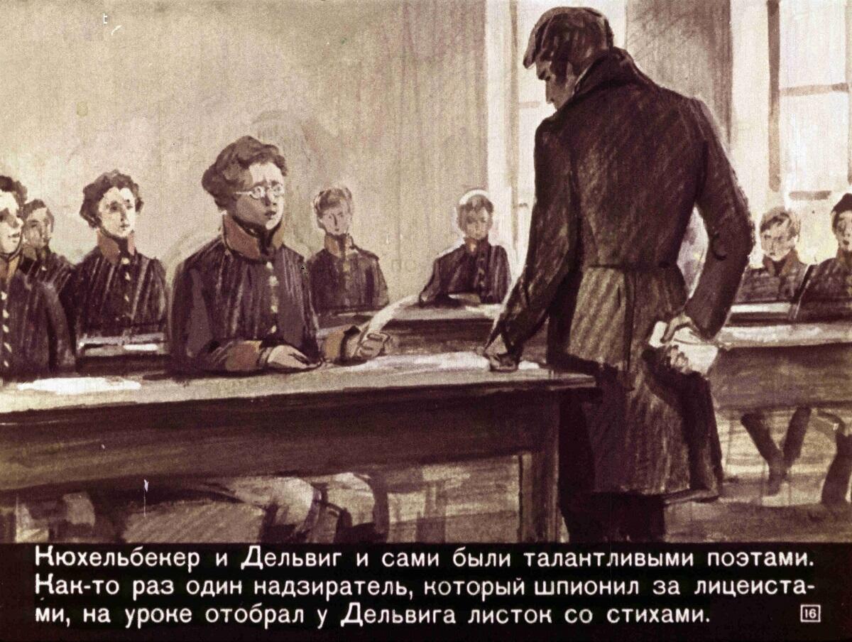 И мнится, очередь за мной, Зовет меня мой Дельвиг милый, Товарищ юности живой, Товарищ юности унылой, Товарищ песен молодых, Пиров и чистых помышлений, Туда, в толпу теней родных Навек от нас утекший гений.