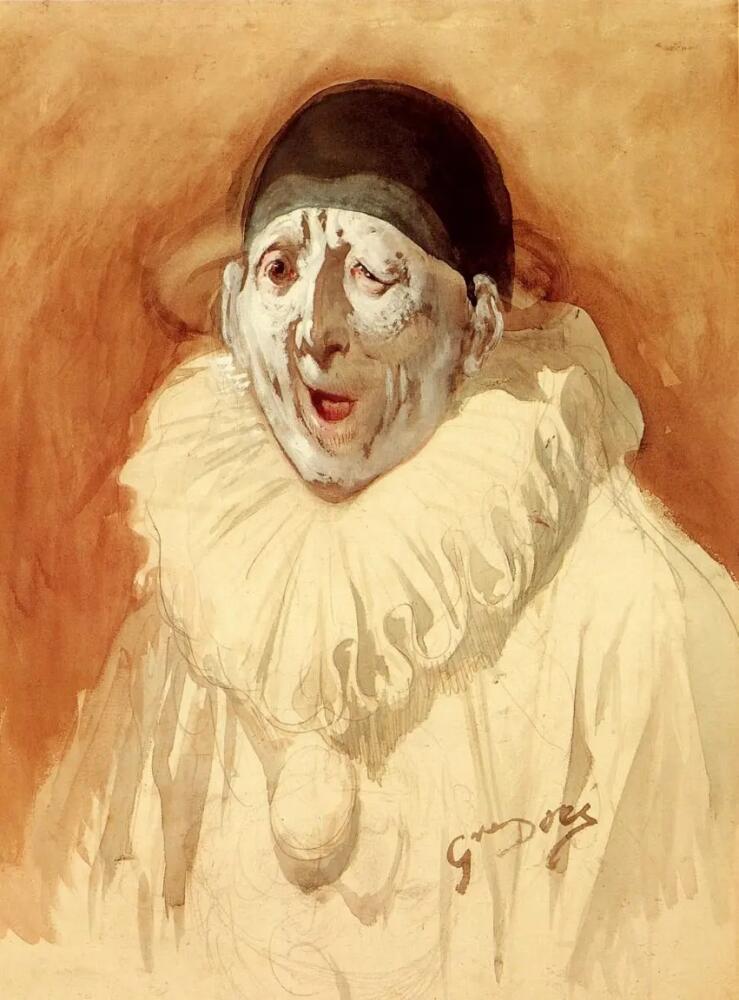Пересмотрел образ французский актёр Батист Дебюро в начале XIX века. Под именем Пьеро выступал в роли несчастного влюблённого, отвергнутого дамой сердца (Коломбиной). Именно как меланхоличный поэт образ и стал популярен. Но на картине Сезанна персонаж не выглядит особенно печальным — напротив, кажется замышляющим что-то. Заставляет вспомнить о прототипе — плуте Педролино.