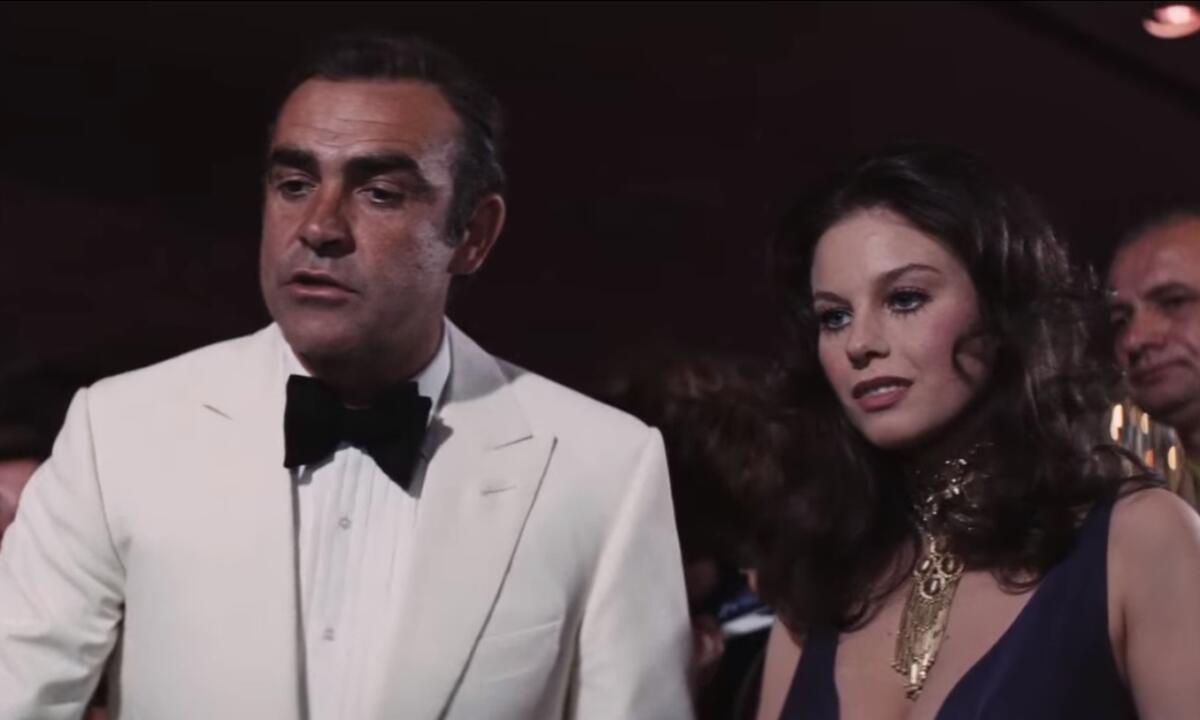 За четыре года, пока мы его не видели, у него появились седые волосы, морщины на лице и ясно различимый, особенно в профиль, двойной подбородок. Его уже ставший привычным парик становится все больше и больше, и наконец становится неубедительным. Его голос становится столь невнятным, что его впору имитировать комикам. Нынешний Коннери в качестве человека действия и повесы — это лишь воспоминания о человеке, которого аудитория когда-то знала и любила.