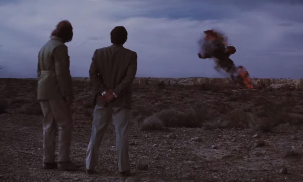 Например, в самом начале фильма сладкая парочка подкладывает бомбу в вертолет, и тот, едва оторвавшись от земли, взрывается. Чем не повод для шутки?
