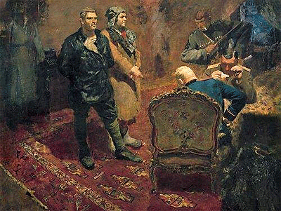 Этой сцены в реальности тоже не было, да и Ильича к моменту написания картины не было в живых. Бродский встречался с ним, но в начале 20-х, на съезде Интернационала.