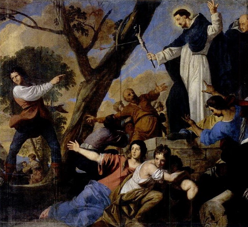 Строчка, которую Евгений Соловьёв перевёл как «Шёл на грешников войной», в оригинале звучит более конкретно: «Боролся с альбигойцами». Речь идёт о так называемой альбигойской ереси (её последователей также называют «катарами»), распространившейся на юге Франции. Во многом с подачи св. Доминика против катаров был объявлен настоящий крестовый поход — со всеми вытекающими отсюда последствиями.