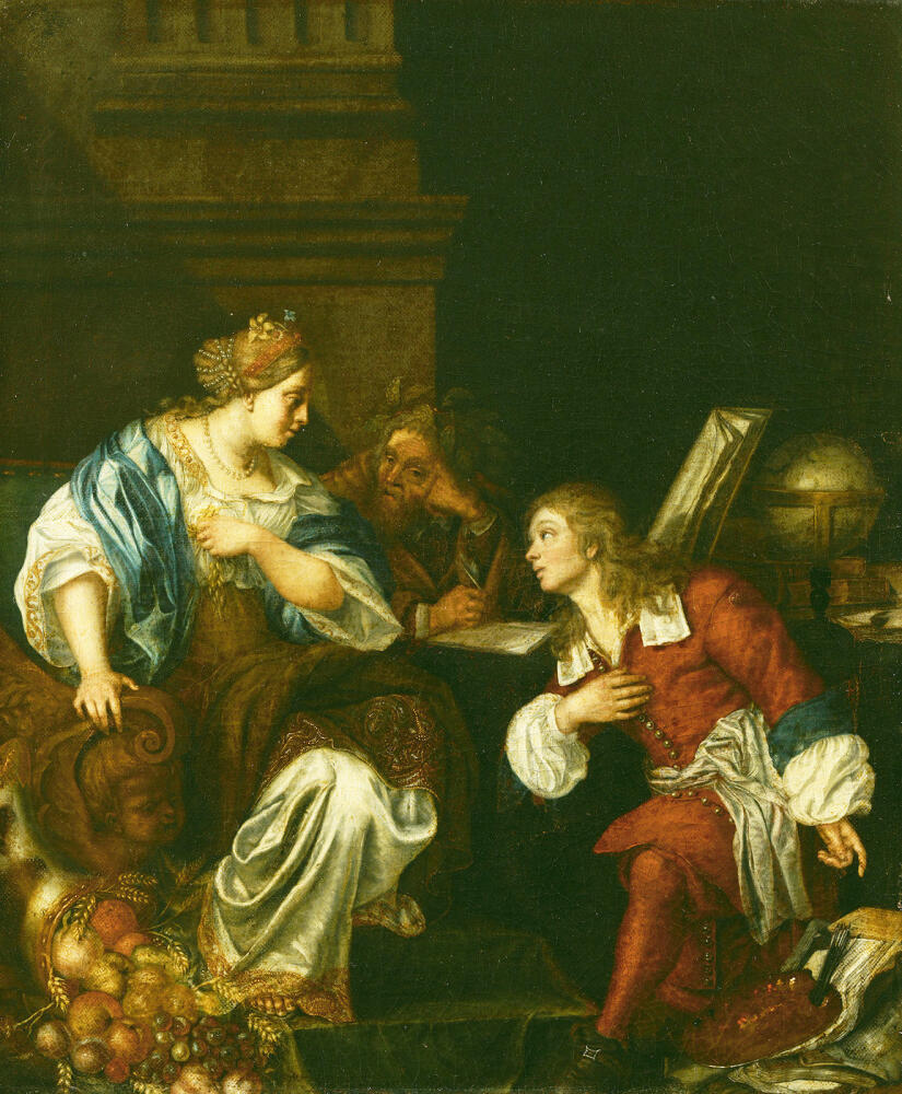 Смысл картины, видимо, подразумевает выбор жизненного пути. Жест юноши говорит о его предпочтениях, но святая как бы показывает на полный рог изобилия. Вероятно, она предлагает избрать другой род занятий, который сулит достаток (художники далеко не всегда могли хорошо заработать).