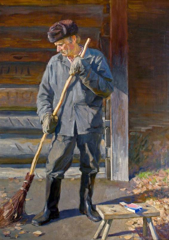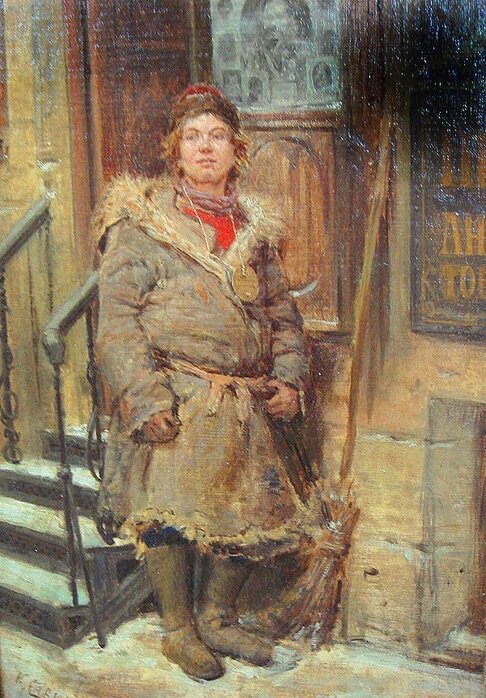 Да, дворник — весьма популярный персонаж русской живописи. Да и советской тоже, хотя в советское время предпочитали изображать других представителей рабочего класса.