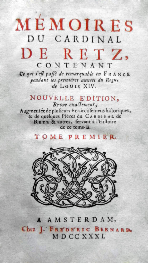 «Мемуары» кардинала де Реца впервые увидели свет лишь после его смерти, в 1717 году, и с тех пор неоднократно переиздавались, став неоценимым источником сведений о героической эпохе французской истории.