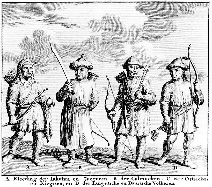 Обитатели Тартарии. Николас Витсен. Тунгус (даурский) крайний справа