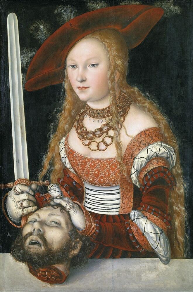 Вспомним того же Кранаха, который писал Юдифь Бог знает сколько раз. Сюжет-то популярный! А если еще изобразить Юдифь вот так, попирая голову побежденного врага:
