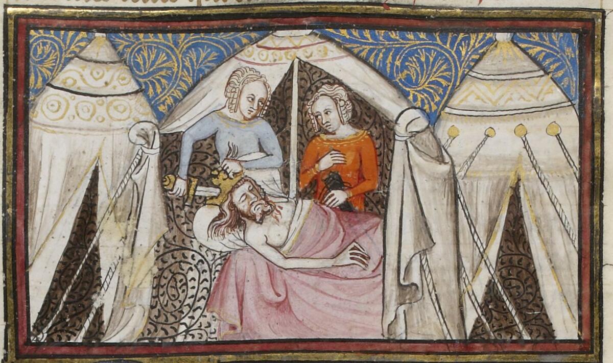 Или даже не совсем еще мертвый, но в процессе отрезания головы. Хотя тут живой уже наверняка проснулся бы, схвати его кто-то во сне за волосы… а впрочем, нет, все нормально. Ведь, согласно Ветхому Завету (кн.Юдифь), ассирийский полководец в это время был пьян…