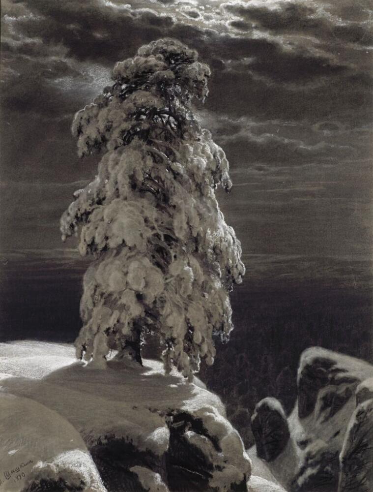 В таких пейзажах кажется, что воздух стал твёрдым. И. Шишкин умел передавать это ощущение лучше многих. Его зимний лес стоит неподвижно, будто врос в землю. И именно это отсутствие движения заставляет зрителя почувствовать: мороз крепкий, уверенный, надолго.