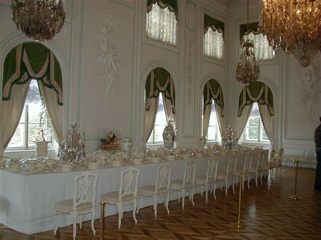 Основным способом выражения мысли архитектора в Тронном зале и Белой столовой также стала лепка и не изменяющая ему строгость классических пропорций декора этих залов дворца.