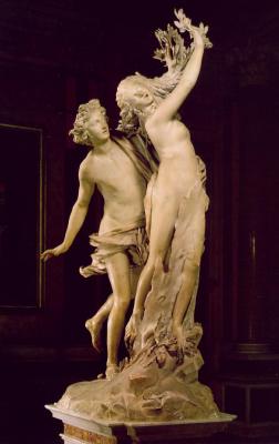 Я видела несколько его работ вживую, в чапеле Де Ла Витториа и чапеле Раймонда. Невероятно! Любимая - это Аполло и Дафин. Она убегает от него и молит отца спасти. Отец превращает ее в дерево, так набегу и превращает - кончики пальцев уже веточки, ноги заплетаются стволом дерева - но все еще летит на кончиках пальцев. Это самая любимая!