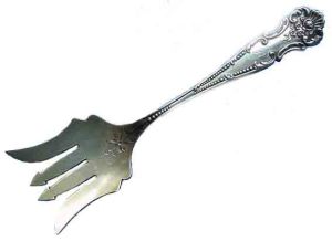 Вилка для устриц, мидий и холодных рыбных коктейлей — один из трёх зубцов (левый) более мощный для легкого отделения мякоти устриц и мидий от раковин.