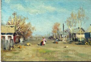 Жаль, что ничего не сказано именно как о живописце. Последняя из представленных работ - слишком "зализанная", очень салонная, из общего ряда выпадает. В центре - пятно непонятное - может, дефект репродукции?