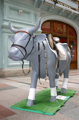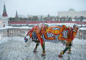 В 2005 году и в Москве при участии бизнес-центра «Романов двор» организуется Парад Коров. Площади города заполнили скульптуры отечественных буренок. Скульптуры были изготовлены в Польше. На Арбате за всего 10 тысяч евро каждый желающий мог раскрасить свою корову. Отбою от любителей покрасить коров просто не было. В акции приняли участие известные люди столицы. Посольством Великобритании в Москве было принято решение впервые организовать в российской столице закрытый аукцион Сотби.