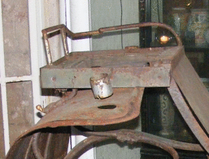 Что мне показалось особенно интересным в этой развалюхе — конструкция. Две вещи обратили на себя внимание: рессоры, а точнее — подвеска в целом, и обрезиненные колеса. Все было бы рядовым, если бы не дата рождения, упомянутая хозяином лавочки — 1830 год.