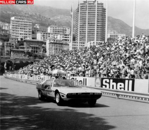 Это Ренье и Грейс открывают гонку Формулы 1 на уникальном авто Марцал, построенном дизайнером Марчелло Гандини.