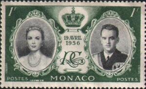 Вот марка, выпущенная к свадьбе Ренье и Грейс. Наша семья вся из неё передралась, в конце концов остальные утратили к ней интерес, я взял её себе.