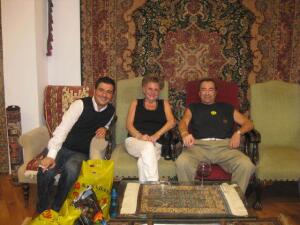 Узнаете свой гели? За нашу маленькую покупку хозяин (слева) нам дастархан заказал - сидим и ждем шаверму, зелень, яблочный чай знаменитый турецкий.