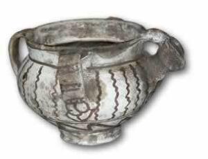 Гирлянды фантастических цветов и листьев опоясывают верхнюю часть тулова кувшинов и ваз. Горлышко украшает орнаментальный поясок-фриз из чередующихся углов и арочек, покрытых легкой штриховкой.