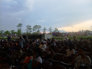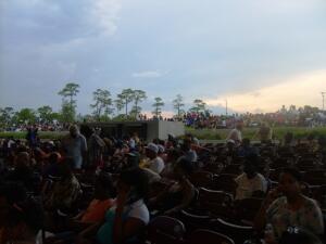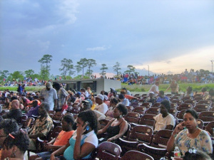 Вчера вечером нашлось у сына время и поехали в "Миллер Театр" на большой концерт под названием "Сохраняйте музыку живой" - "Keeping the Music Alive". Вот это был концерт! Он шел более трех часов, без антракта, без перерывов. Все время ансамбль музыкантов находился на сцене - (12 человек). Музыка, песни в стиле 80-х, певцы из разных городов США, сменяли друг друга, в основном это были темнокожие афро-американцы. Какие у них сильные голоса! Даже микрофоны отодвигали от себя. Никто здесь не выступает "под фанеру", даже в голову никому не придет. Часть концерта была посвящена памяти Майкла Джексона, была танцевальная группа, очень много танцевали в стиле Майкла Джексона. Словом, концерт- просто чудо. А народу было - и в театре под навесом, и на холме, не взирая на жару - перед началом концерта температура на улице была +36 градусов. Мы сидели на 4 ряду и до нас доходила прохлада от сцены - там мощные кондиционеры работали.И под навесом еще вращались вентиляторы, так что было нормально.Жаль, что я успела сделать нормально только одно фото перед концертом, когда еще было достаточно светло, а потом у меня фотоаппарат разрядился....