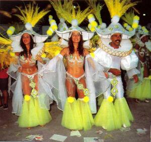 Бразильский карнавал имеет достаточно древнюю историю, но только в середине XX в. неорганизованные группы образовали первые школы самбы. В 1916 г. была написана первая самба специально для карнавала. Она называлась «По телефону». В настоящее время карнавал в Рио-де-Жанейро — один из самых грандиозных (40000 актёров в день) и самых организованных карнавалов в Бразилии. Каждая школа разрабатывает одну тему: политика, природа, спорт, искусство, музыка — все темы должны быть бразильскими.