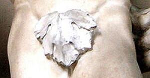 Со статуями было сложнее. Могучие гениталии античных богов и героев не зарисуешь. Поэтому владыки светские или духовные давали заказ кому-нибудь из современных им скульпторов немного поправить классиков. Скульпторы вырезали из мрамора роскошный фиговый листок и приклеивали к древней скульптуре, чтобы скрыть торчащие признаки мужской силы. Некоторые при этом забывали подкрасить мрамор под цвет «исправляемой» древности. В результате новый ярко-белый листочек выделялся на фоне старого мрамора, привлекая всеобщее внимание к тому, что должен был бы закрывать.