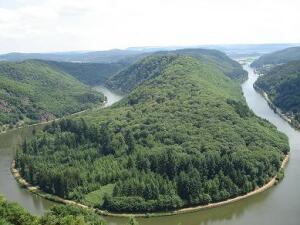 Знаменитый меандр реки Саар - Сааршляйфе. Здесь Саар дважды меняет направление.