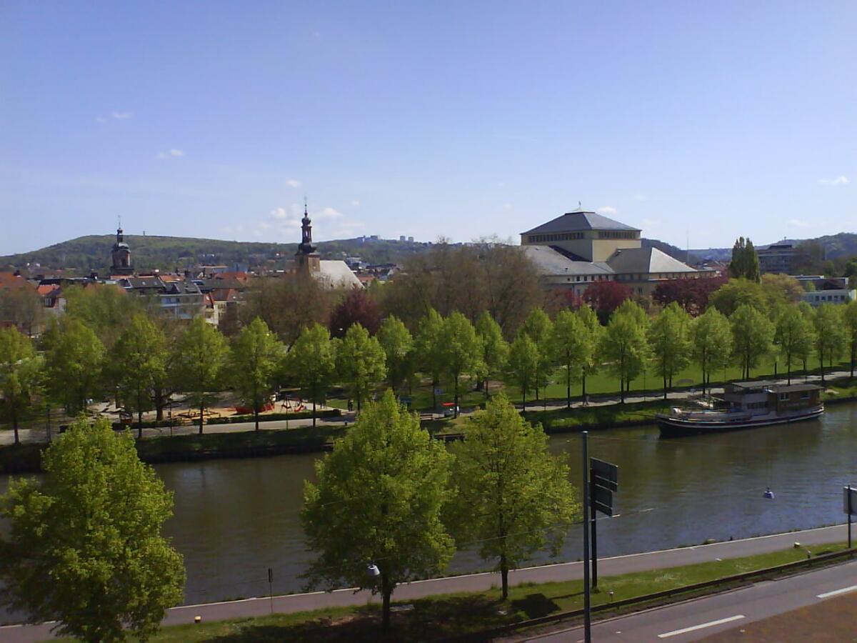 Саарбрюкен, вид на реку. Справа - здание театра.