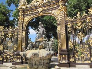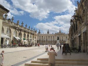 Плас Станислас, Плас де ля Каррьер, Плас д Альянс соединены меж собой колоннадой и триумфальной аркой. Подлинное украшение площади Станислава — позолоченное литье мастерской Жана Ламура, фонтаны работы Бартелеми Гибаля и Епископский Дворец и Школа Лекарей (ныне оперный театр и музей изящных искусств), выстроенные в стиле раннего классицизма. Ансамбль немного напоминает Площадь Согласия в Париже.