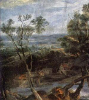 Затопленная деревня с "Горного пейзажа с Юпитером, Меркурием, Филемоном и Бавкидой".