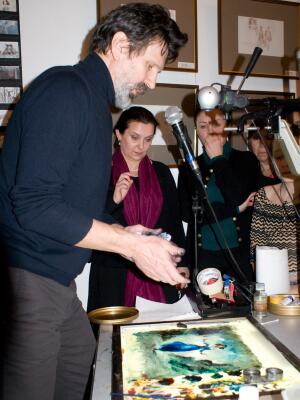 На фотке - как раз показывает, как исполняются картинки, маслом по прозрачному пластику.