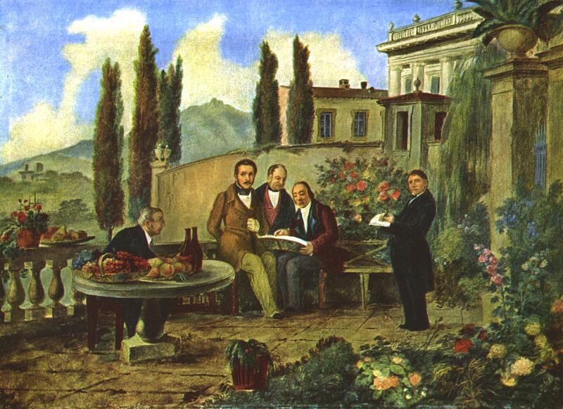 Итальянская музыка начала XIX века не исчерпывается фамилиями Россини, Беллини и Доницетти. Творил в то время еще Саверио Меркаданте. Странным образом, его почти 60 опер в наше время неизвестны и не исполняются. А вот музыка, которую сочинили его правнуки уже в XX веке — весьма известна. Эрнесто де Куртис — правнук Меркаданте и автор знаменитой на весь мир песни «Вернись в Сорренто». Но неаполитанские песни — это отдельная большая тема.