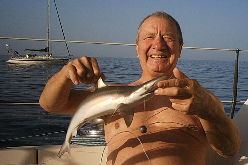Но с изощренными спиннингами нам не везло. Потому я ощутил кайф героя, тем более ланч из акулы я сотворил безупречно на испанском оливковом масле с их знаком качества — «Y». Питер не колеблясь вскрыл капитанскую заначку с виски «Баллантайн». Потом на ту же «снасть» попалась летучая рыба, хотя в океане они нещадно сыпались в кокпит на наши головы.