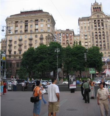 Крещатик, центральная улица Киева, полностью сгорел во время войны и был отстроен весь заново. Самые монументальные сооружения на нем — здания «сталинского ампира» — были закончены строителями в 1954 году. Стены домов облицованы керамикой, а цоколи (по-моему, до четвертого этажа) — гранитом. Высота потолков в этих домах — четыре с половиной метра (если я не ошибаюсь). Об этот помпезный стиль сточили зубы поколения критиков от архитектуры, но — впечатляет!