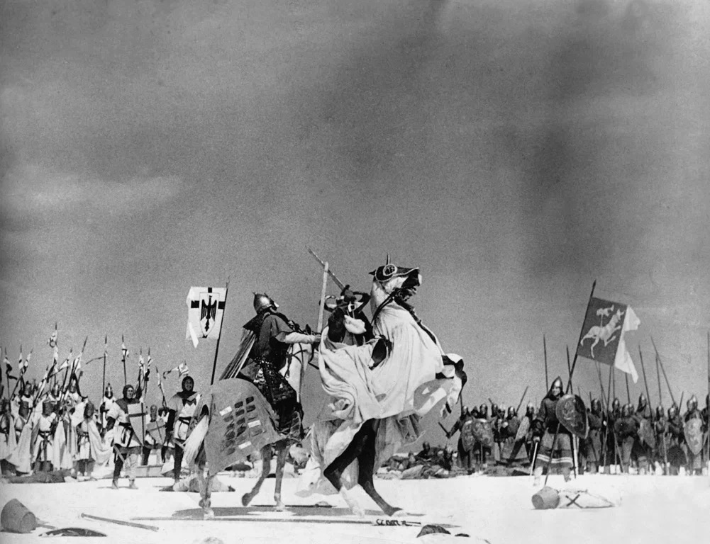 Именно этими евангельскими словами, вероятно, вдохновлялся автор сценария к фильму «Александр Невский» (1938) советский писатель Петр Андреевич Павленко,