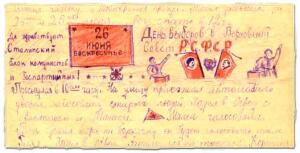 Проснулся в 9 ч. Гулял. Спускали на воду Митюшкину байдарку. Катался на байдарке. Гулял. В 4 ходил в город в магазине культтоваров купил 3 масляные краски. Обедал делал из глины танки и крейсер. Гулял. Ходил к папе взял у него сливочное масло. Пил чай. Гулял. Вечером написал письмо Лене. Папа нынче уезжает в Москву в командировку. Лег спать в 11ч." Автор дневника - дите, перешедшее в 6 класс.