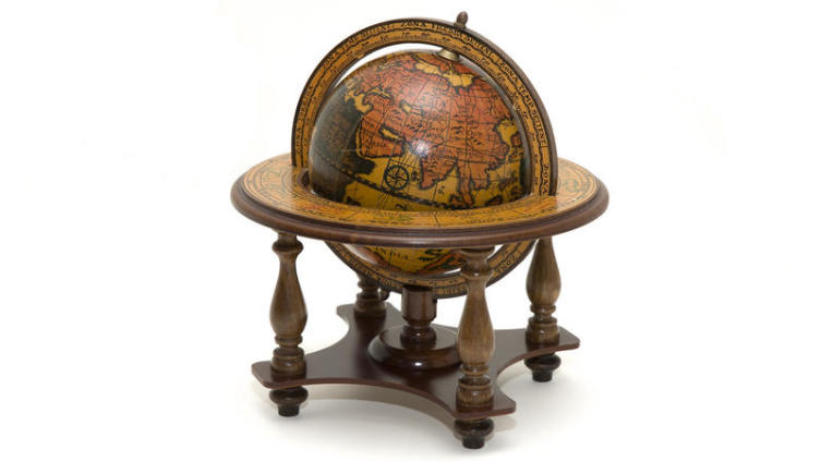 Первый глобус появляется в 1492 году. На его каркас наклеена напечатанная карта мира! На нем еще нет Америки, Колумб откроет ее только через год.