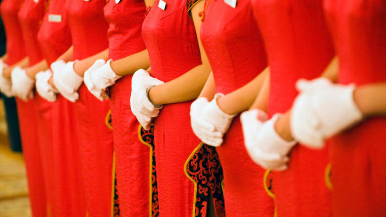 Платья невесты имеет традиционно красный цвет, но сейчас все больше невест «красуются» в белом, оставляя красный цвет лишь туфелькам.