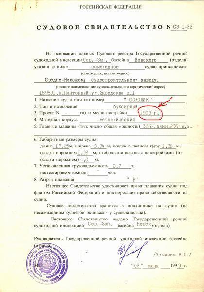 Походы в архив и музей завода информации не добавили: здесь собраны документы лишь о строившихся кораблях и их истории. О старейшем работнике верфи, буксире «Соколик», практически ничего — судовое свидетельство, выданное Государственной речной инспекцией, да одинокая, надорванная посередине фотография с надписью на обратной стороне: август 1952 года…