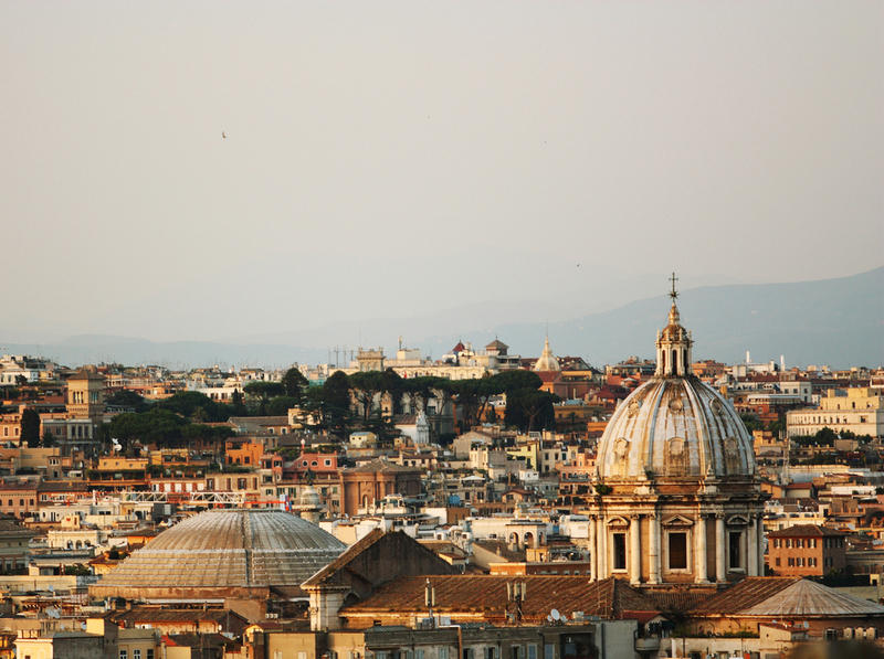 Для освещения и вентиляции помещения Пантеона в верхней части купола сделали отверстие диаметром в 9 метров. В солнечный день в это отверстие проходит луч света, который не рассеивается, а образует как бы световой столб. Зрелище очень красивое!