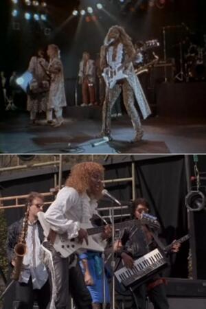 А вот кадры из сериала "Команда А", эпизод под названием "Сердце рок-н-ролла" из 4-го сезона. Видимо, подобный стиль пришёлся рок-н-ролльщикам по вкусу.